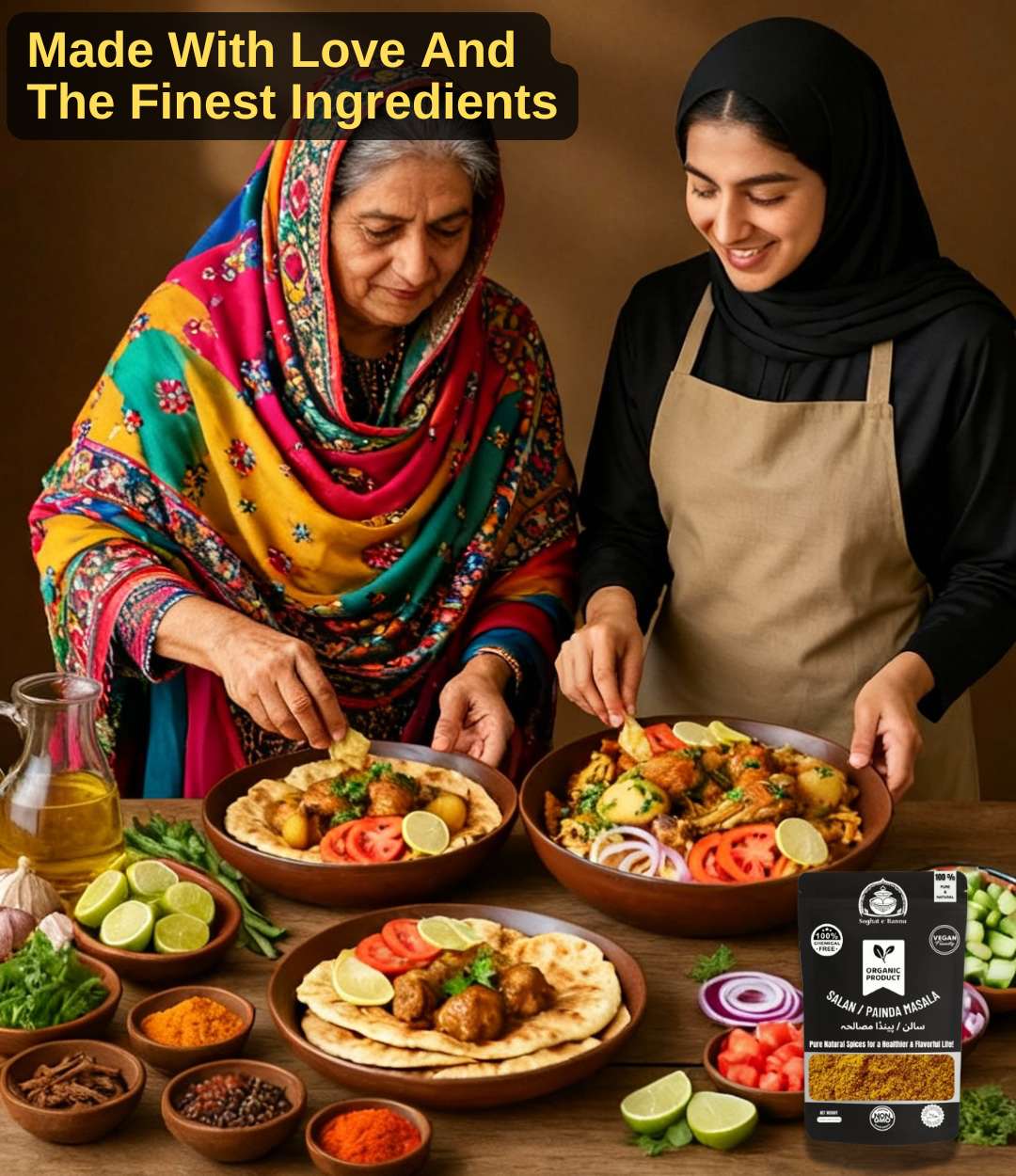 Soghat-e-Bannu offers a wide range of organic ingredient-based masala products, including Qorma Masala, Kabuli Pulao Masala, and many more. Each blend is crafted to bring authentic flavors to your kitchen while keeping your meals pure and healthy.